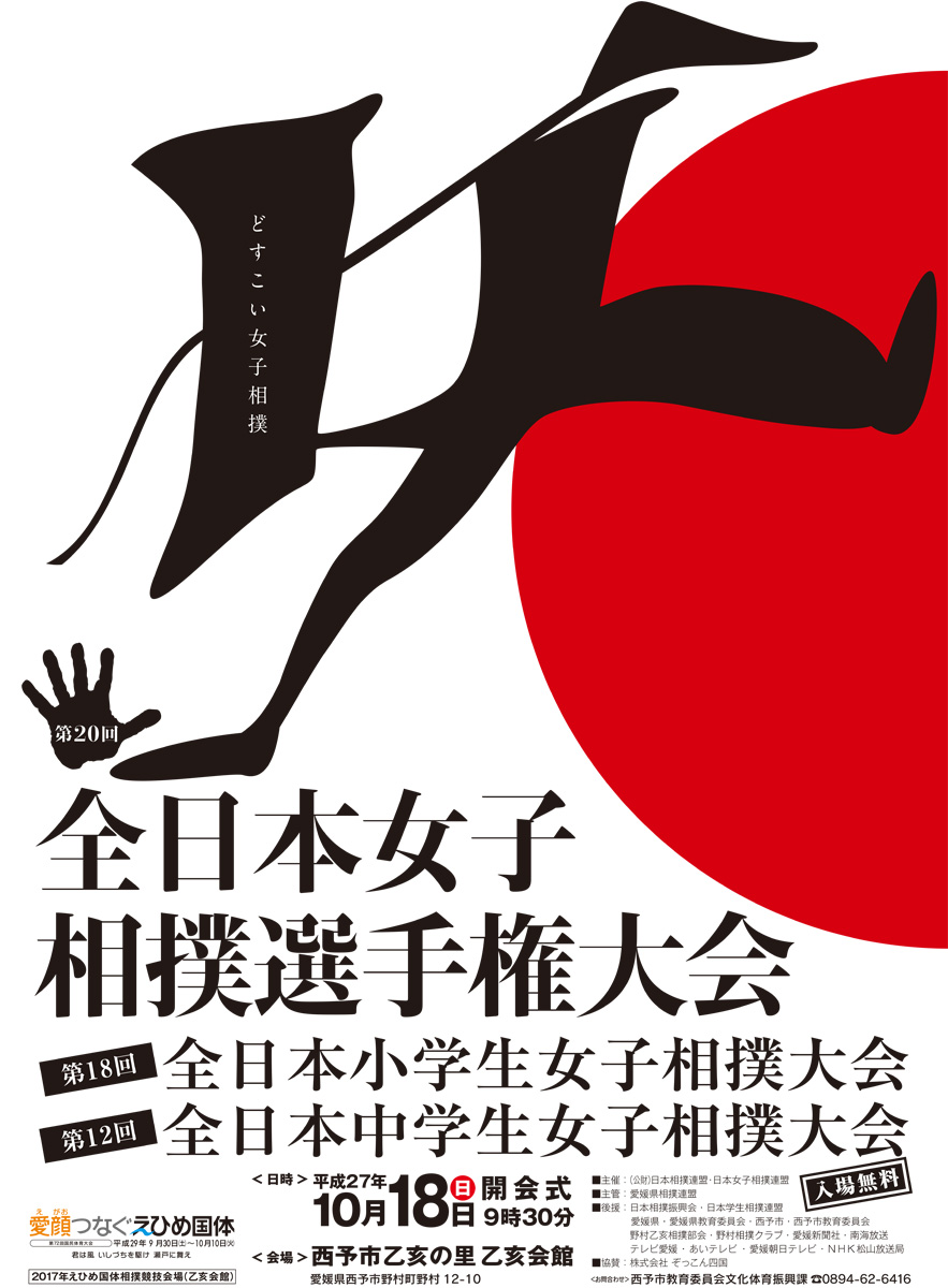 女子相撲を写真やイラストで表現するのではなく、「女」という文字を擬人化することで印象に残るポスターをデザインしました。