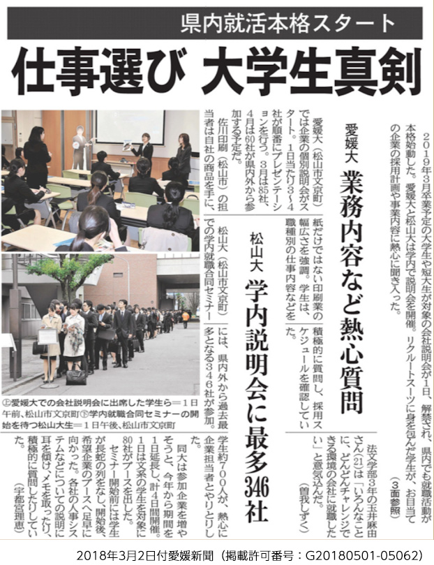 2018年3月2日付愛媛新聞記事にて、紹介していただきました。