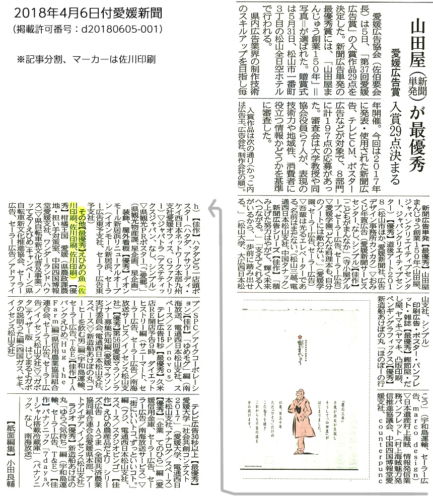 2018年4月6日付愛媛新聞に記事が掲載されました。