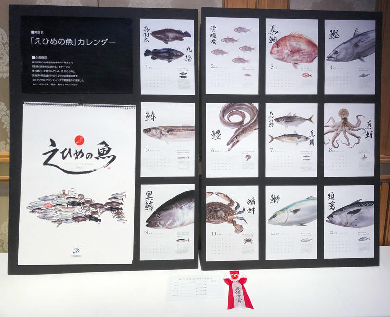 愛媛広告協会が「第37回愛媛広告賞」の入賞作品を決定し、 8部門計197点の応募の中から 佐川印刷の「えひめの魚」カレンダーが その他部門で最優秀賞を受賞いたしました! 5/31(木)に松山市内で 贈賞式が行われました。