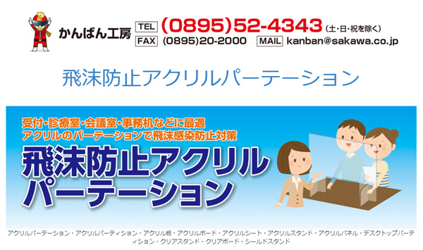 かんばん工房 飛沫感染防止アクリルパーテーション 専用サイトはこちら