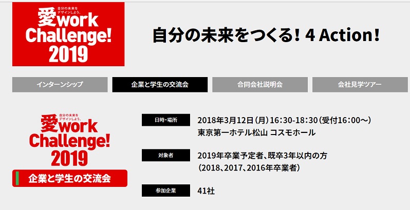 3/12(月) 愛work Challenge!2019「企業と学生の交流会」に参加します!